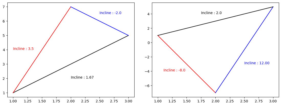 // x 좌표가 인접한 좌표끼리 기울기 계산